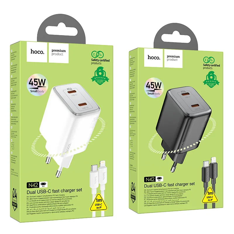Product Details: N42 Elogiado dual-port PD45W(2C) charger set(C to iP)(EU)