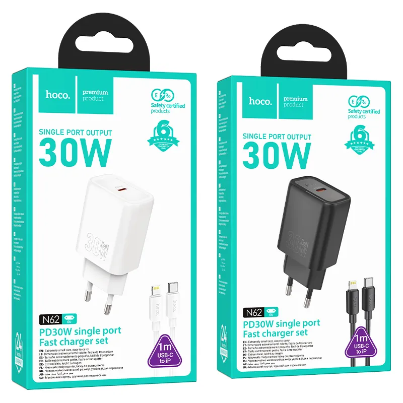 Hình Ảnh sản Phẩm: Bộ Sạc Kèm Dây C to iP Hoco N62 Gentle PD30W (EU) sạc nhanh 30W chính hãng mua ngay