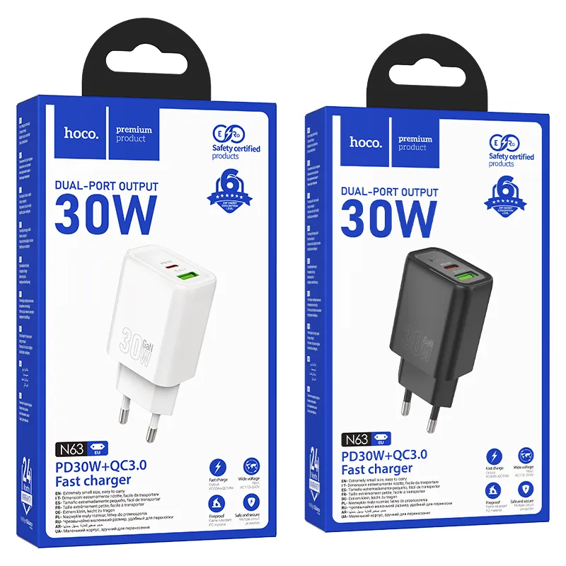 Hình Ảnh sản Phẩm: Bộ Sạc Kèm Dây C to iP Hoco N63 Gentle PD30W+QC3.0 (EU) – Sạc nhanh an toàn, chính hãng, mua hàng giá tốt