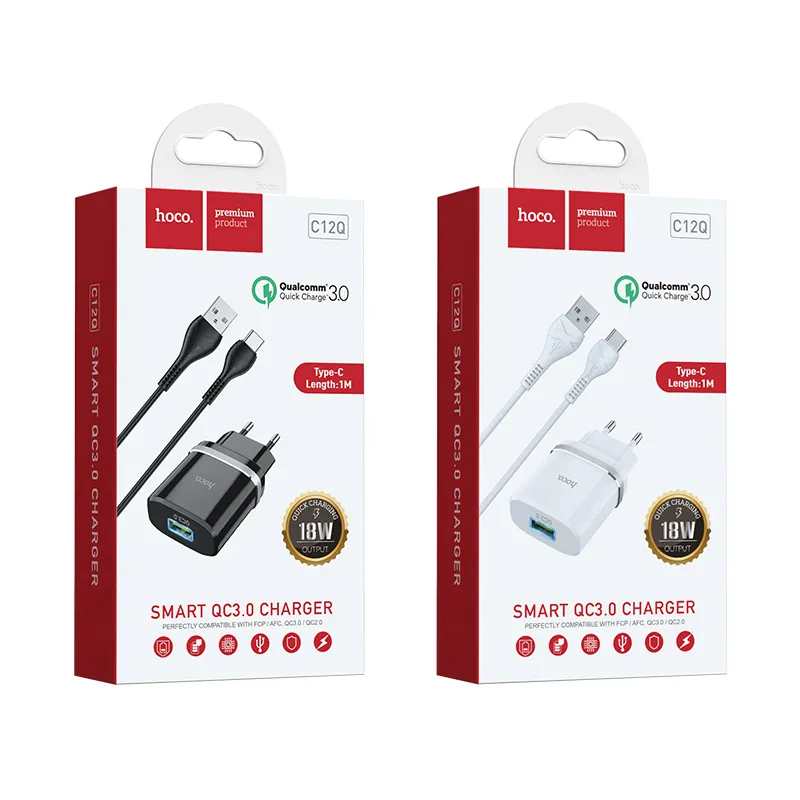 Bộ Sạc Kèm Dây Type-C Hoco C12Q Smart QC3.0 (EU) sạc nhanh 18W, chống cháy, dễ bán lợi nhuận cao, đổi trả linh hoạt, phân phối chính hãng tại Việt Nam