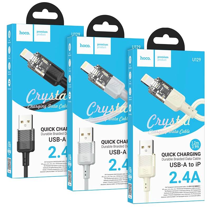 Hình Ảnh sản Phẩm: Cáp Sạc iP Hoco U129 Spirit Transparent sạc nhanh 2.4A tăng tốc độ sạc, bền bỉ, dễ mua tại đại lý