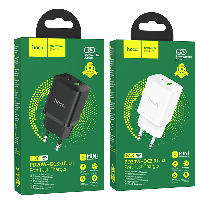 Củ Sạc PD20W+QC3.0 Hoco N28 Founder (EU) hiệu suất sạc nhanh vượt trội, giao hàng toàn quốc, hỗ trợ đổi trả, bảo hành 12 tháng, phân phối chính hãng, lợi nhuận cao