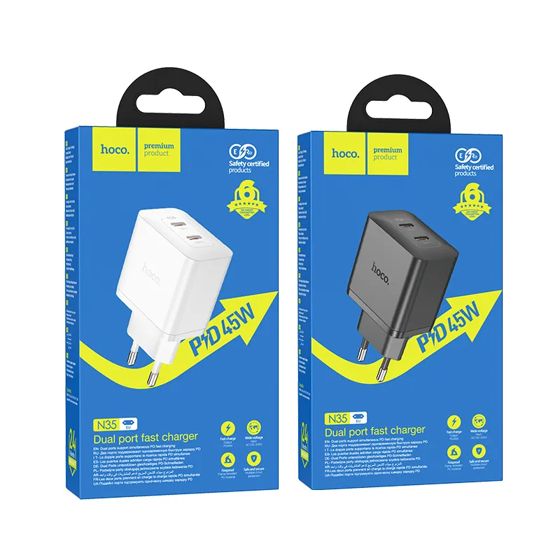 Hình Ảnh sản Phẩm: Củ Sạc PD45W GaN Hoco N35 Streamer (EU) sạc nhanh 45W an toàn, gọn nhẹ, đa năng