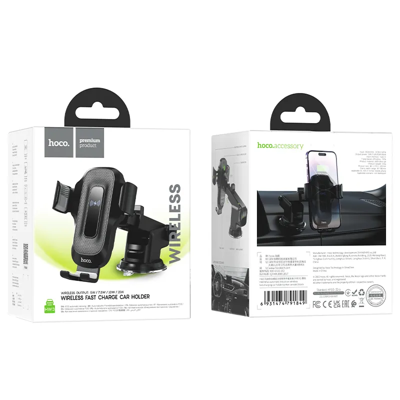 Mô Tả Sản Phẩm VI: Giá Đỡ Ô Tô Sạc Không Dây Hoco HW3 Wise Automatic Induction (Center Console)