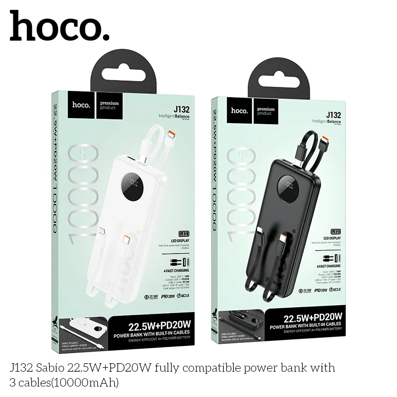 Hình Ảnh sản Phẩm: Pin Dự Phòng Hoco J132 Sabio 22.5W+PD20W tương thích đầy đủ kèm 3 cáp 10000mAh sạc nhanh đa chuẩn, pin bền bỉ, mua ngay pin dự phòng chất lượng