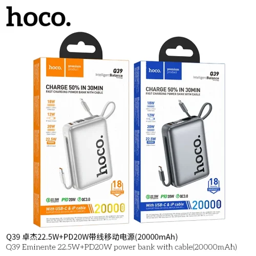 Product Details: Q39 Eminente 22.5W+PD20W power bank with cable(20000mAh)