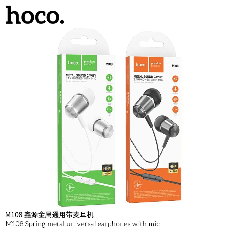 Tai Nghe Có Dây 3.5mm Hoco M108 Spring metal universal – Âm thanh sắc nét, hỗ trợ giao hàng toàn quốc, đổi trả dễ, bảo hành 12 tháng, phân phối chính hãng