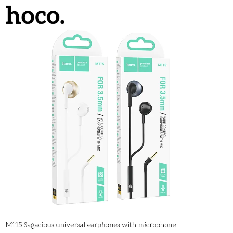 Hình Ảnh sản Phẩm: Tai Nghe Có Dây 3.5mm Hoco M115 Sagacious universal âm thanh chuẩn, micrô hỗ trợ, điều khiển nút dễ dùng