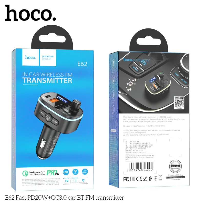 Product Details: E62 Fast PD20W+QC3.0 car BT FM transmitter