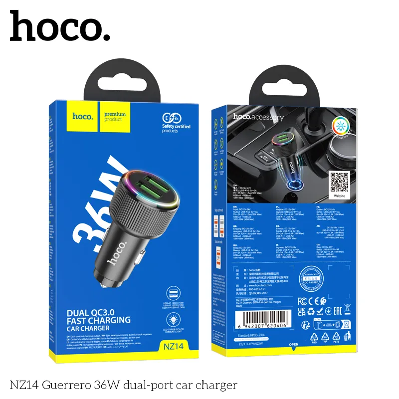 Hình Ảnh sản Phẩm: Tẩu Sạc Ô tô Hoco NZ14 Guerrero 36W Sạc nhanh 2 cổng USB Mua nhanh