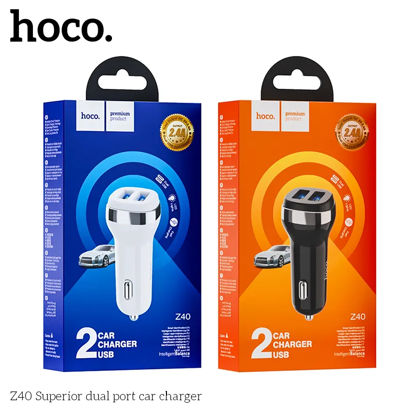 Hình Ảnh sản Phẩm: Tẩu Sạc Ô tô Hoco Z40 Superior – Sạc nhanh 2 cổng an toàn – Mua dễ dàng chính hãng