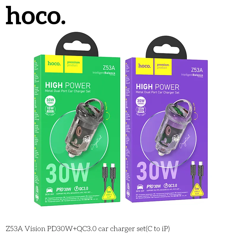 Hình Ảnh sản Phẩm: Tẩu Sạc Ô tô Hoco Z53A Vision PD30W+QC3.0 kèm dây C to iP – Sạc nhanh an toàn, tiện lợi, chính hãng Hoco
