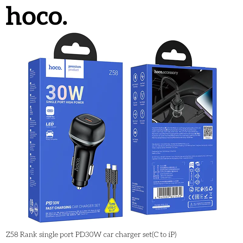 Product Details: Z58 Rank single port PD30W car charger set(C to iP)