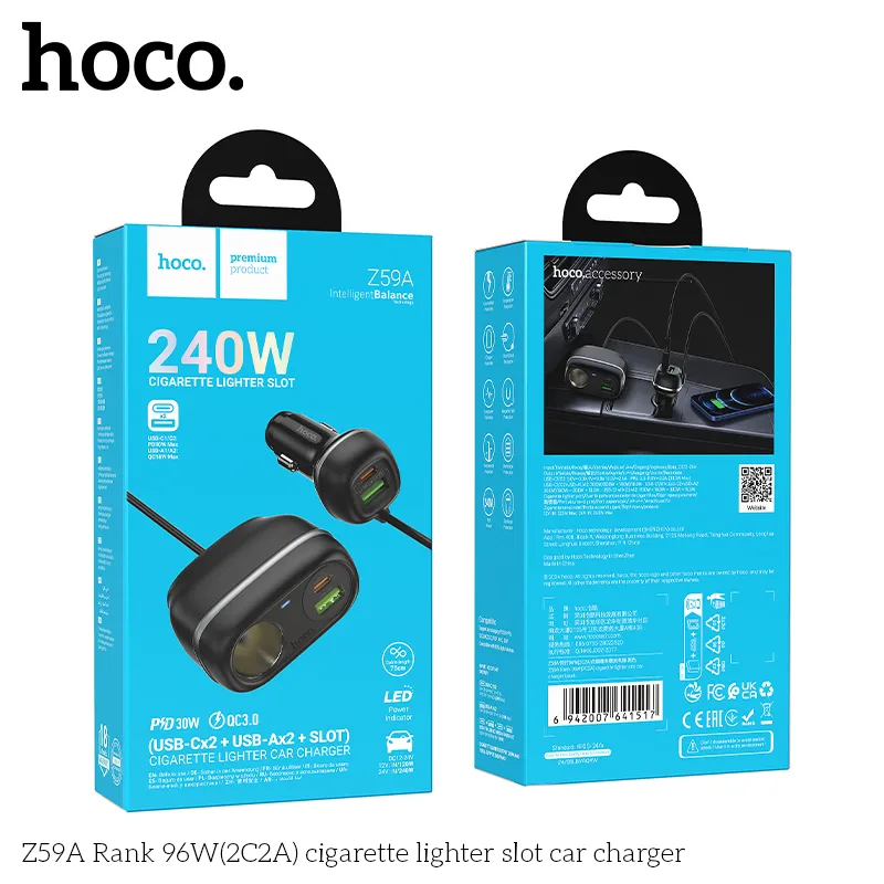 Tẩu Sạc Ô tô Hoco Z59A Rank 96W thiết kế chống cháy PC, bảo hành 12 tháng, giao hàng toàn quốc, hỗ trợ phí, đổi trả dễ dàng, nhà phân phối uỷ quyền uy tín